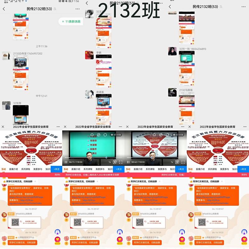 为全面贯彻落实上级会议和文件精神,进一步完善民族传统体育系全体师生的安全教育,系部全体师生在4月15日上午8:00-9:30,观看了由山西省教育厅主办,《山西教育》杂志社承办的主题为“树牢总体国家安全观,感悟新时代国家安全成就,为迎接党的二十大胜利召开营造良好氛围”的2022年全省学生国家安全教育线上讲座,倪宁老师授课。倪宁老师不仅是山西大学军事教研室特聘教师,而且还是山西省国防经济动员协会理事。