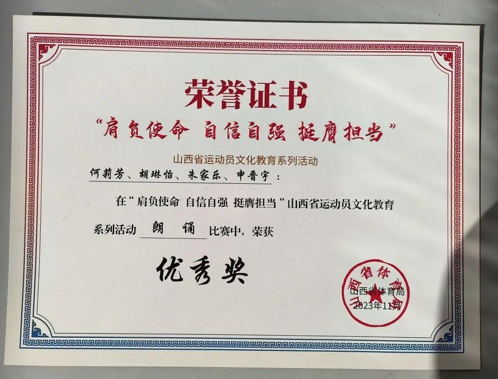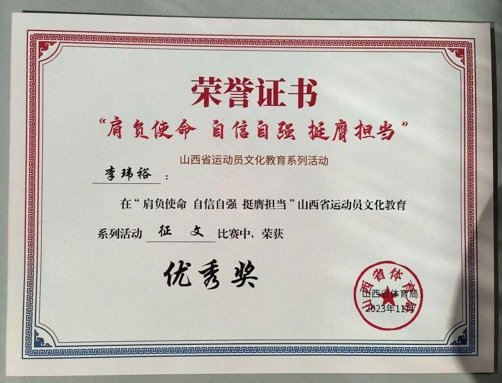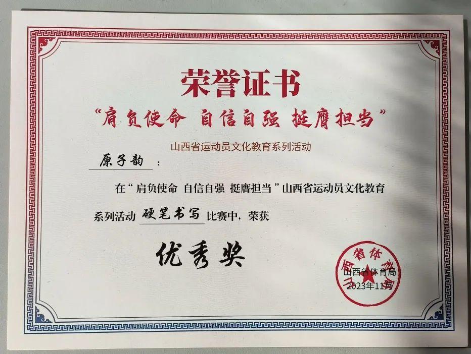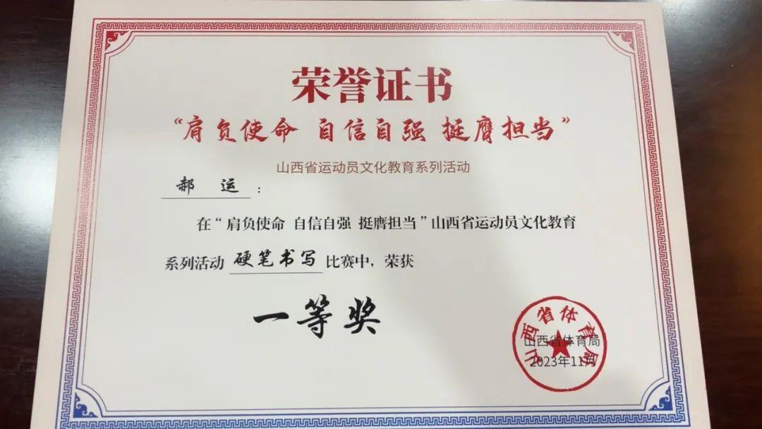 为引导运动员厚植家国情怀、涵养进取品格,以奋斗姿态激扬青春,不负时代,不负华年,山西省体育局于2023年9月至11月组织开展了“肩负使命 自信自强 挺膺担当”运动员文化教育系列活动,红足一1世足球网官方网站积极参与,运动训练二系学生在摄影、征文、朗诵、硬笔书法比赛中均取得了优异成绩。