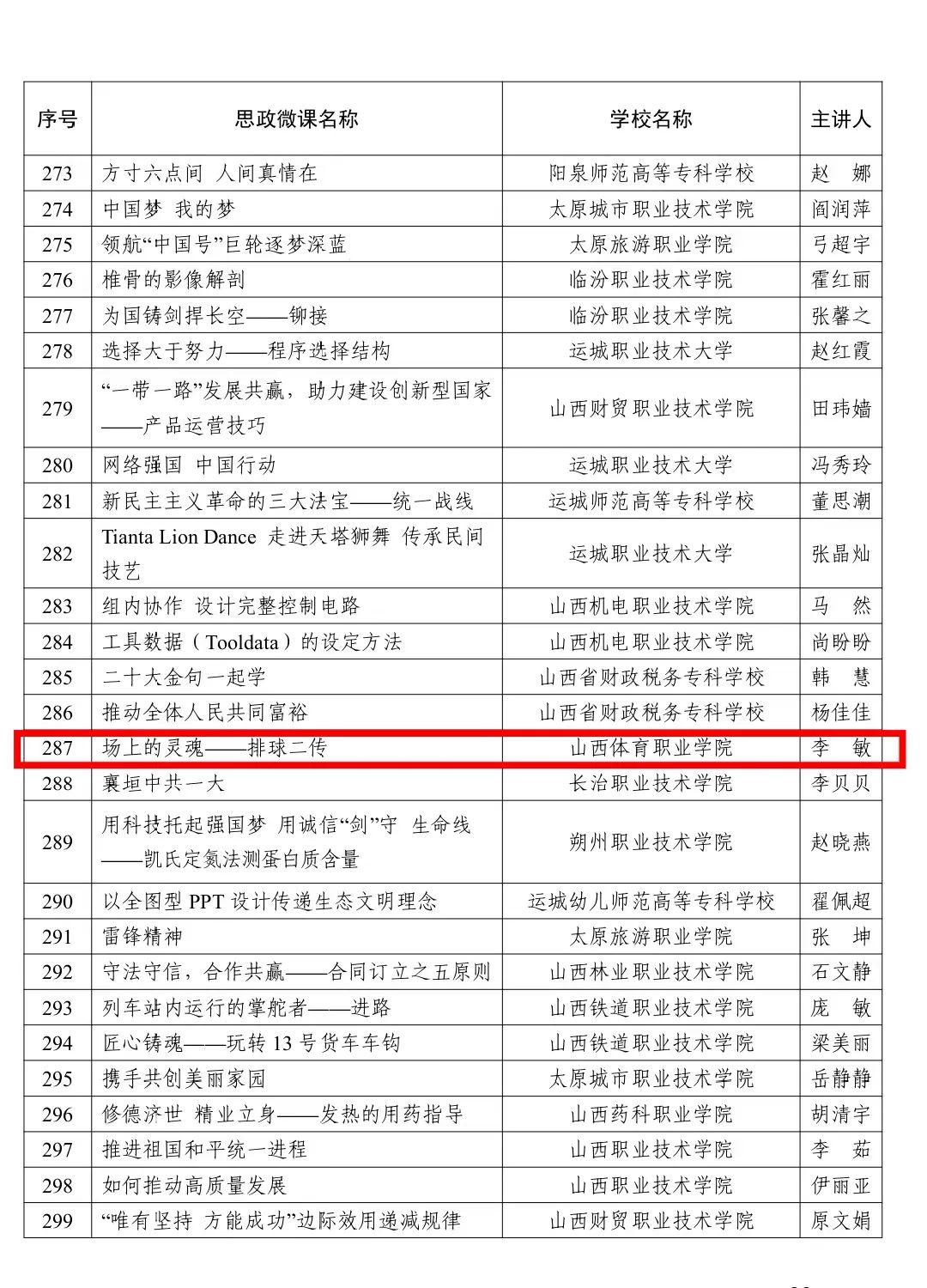 近期,我系教师李敏参加了2023年度山西省职业教育铸魂育人计划项目,申请了题为 ‘‘场上的灵魂-排球二传’’思政微课 ,获得了2023年山西省级思政微课认定。