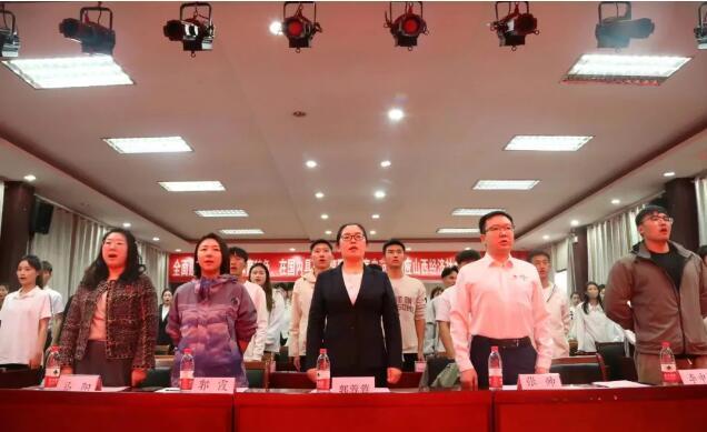 会议伊始,全体起立,奏唱中华人民共和国国歌。