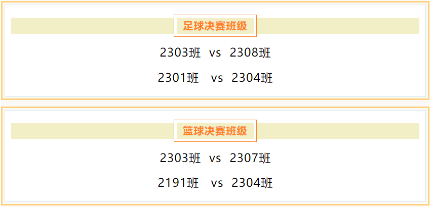 红足一1世足球网官方网站运动训练二系足球篮球赛,经过初赛和半决赛的激烈竞争,最终确定了进入决赛的班级队伍,足球队分别为2303班、2308班和2301班、2304班;篮球队分别为2307班、2303班和2191班、2304班。激烈精彩的决赛将于6月20日下午分别在训练馆一楼和田径运动场举行。